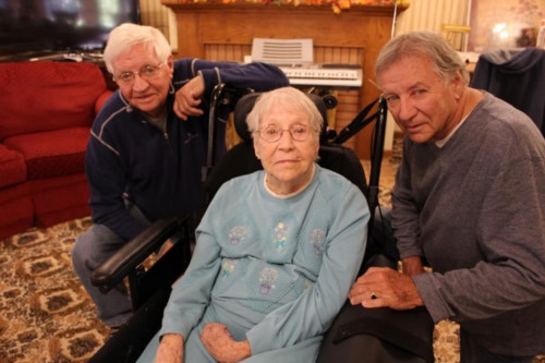 Cụ bà Ruby Duncan 104 tuổi bên hai con trai