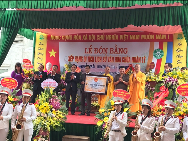 TCVM - Ngày 10-11, huyện Ân Thi (tỉnh Hưng Yên) tổ chức trao Bằng di tích lịch sử văn hóa cấp tỉnh cho chùa Nhân Lý tại xã Nguyễn Trãi. Ông Nguyễn Văn Phóng, Chủ tịch UBND tỉnh Hưng Yên và gần 1.000 cán bộ, nhân dân, tăng ni, phật tử tới dự.