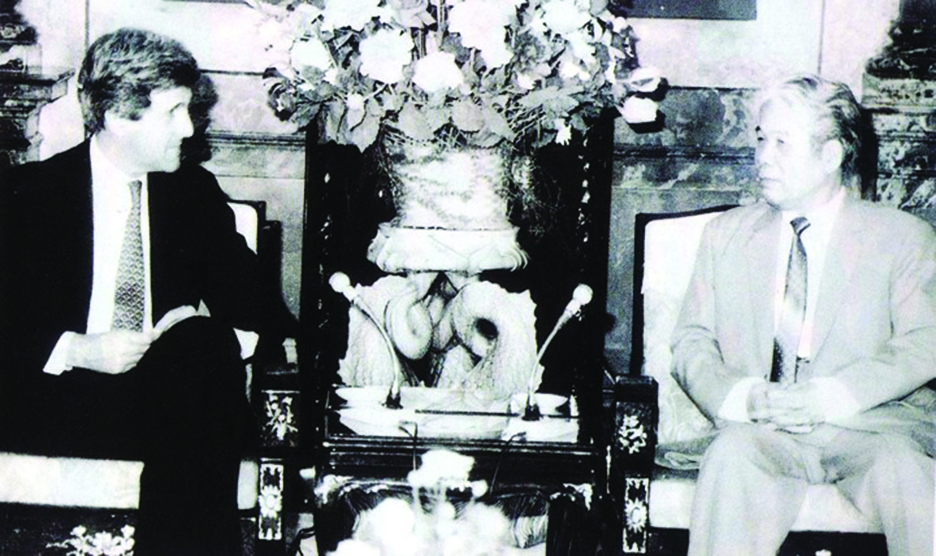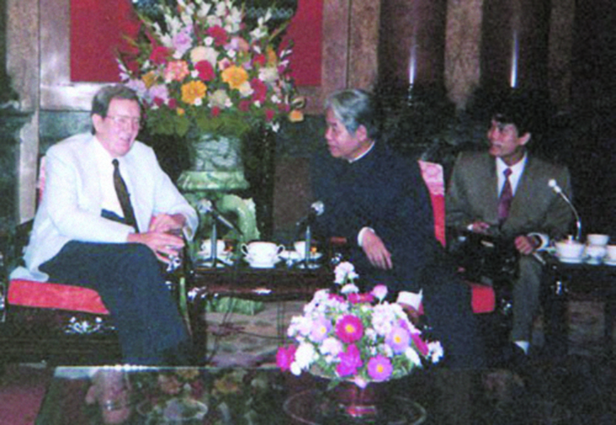 Đặc phái viên của Tổng thống Mỹ, cựu Ngoại trưởng Edmund Muskie tiếp kiến Tổng Bí thư Đỗ Mười vào tháng 4/1993. (Ảnh do nguyên Đại sứ Việt Nam đầu tiên tại Mỹ Lê Văn Bàng cung cấp)