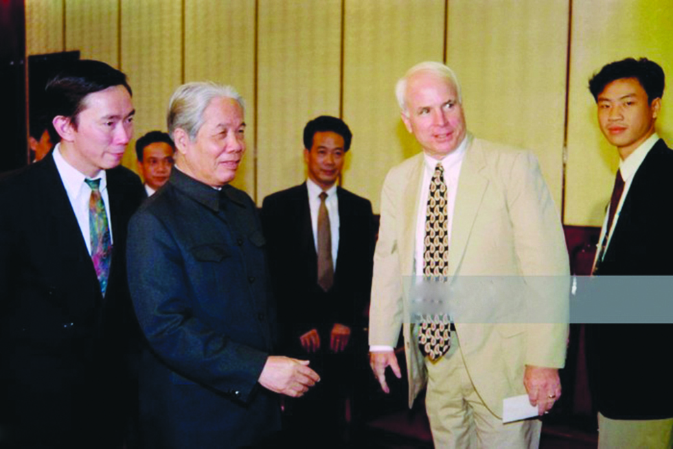 Đồng chí Đỗ Mười tiếp đón Thượng nghị sĩ Mỹ John McCain tại Hà Nội ngày 13/11/1996. Ảnh: Getty.